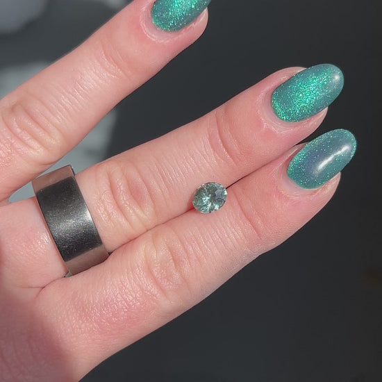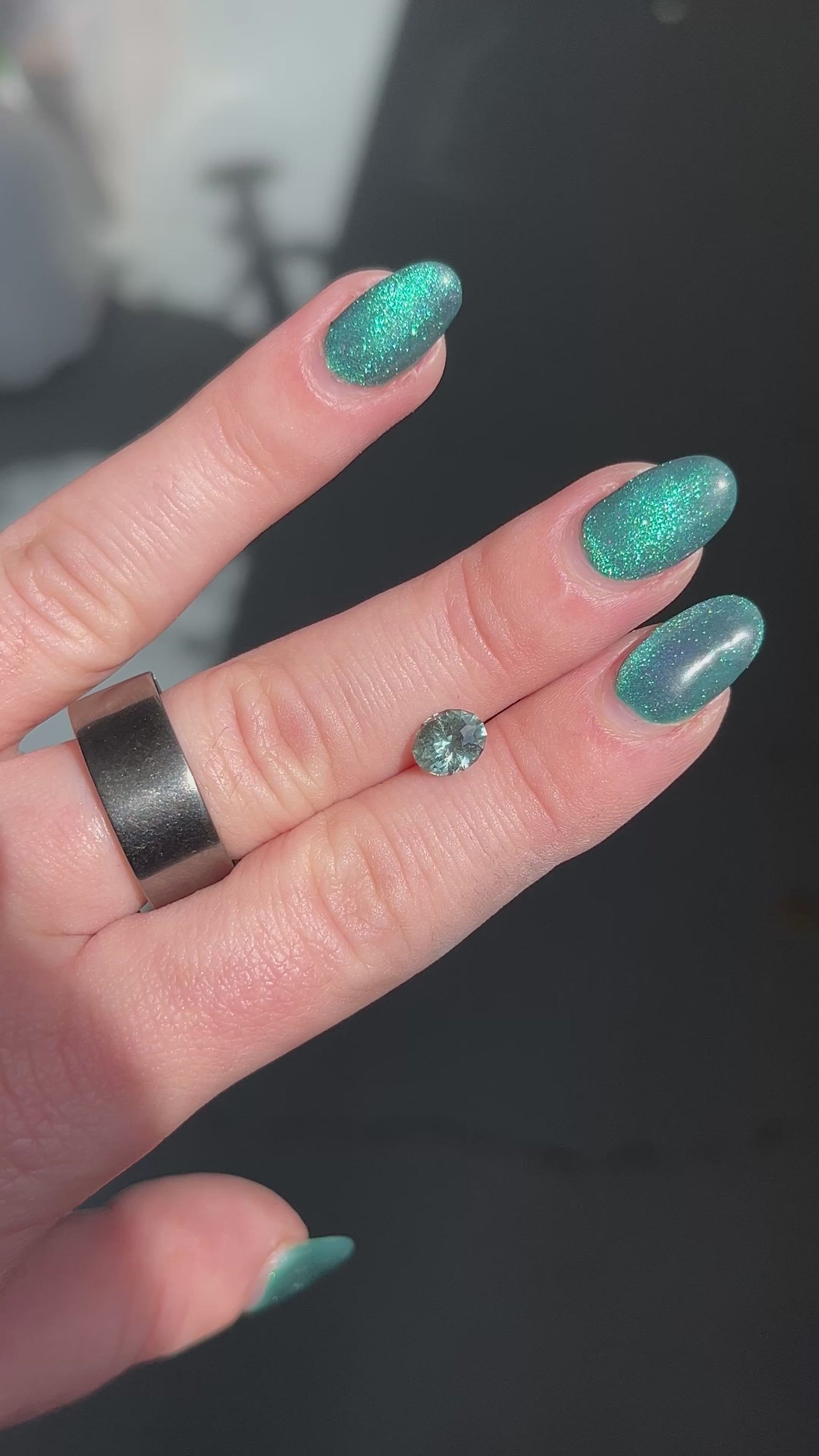 beautiful light medium saturation, greenish teal, more blue in natural sunlight. No heat, Eldorado Bar, Montana. Custom modified oval cut
