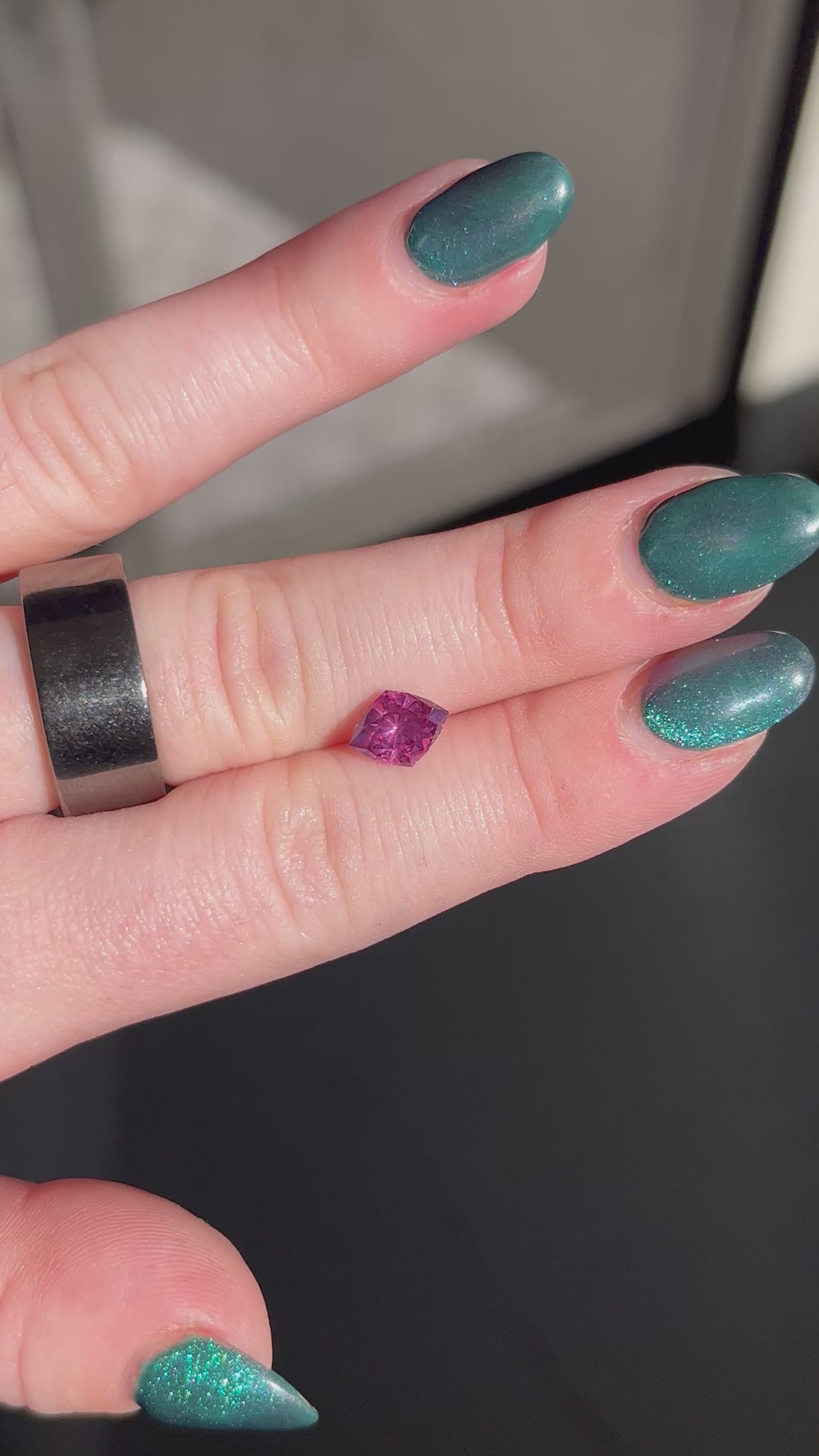 no heat, pink, Tanzanian. Sugar inclusions under and touching the table. Surface reaching fracture along girdle.