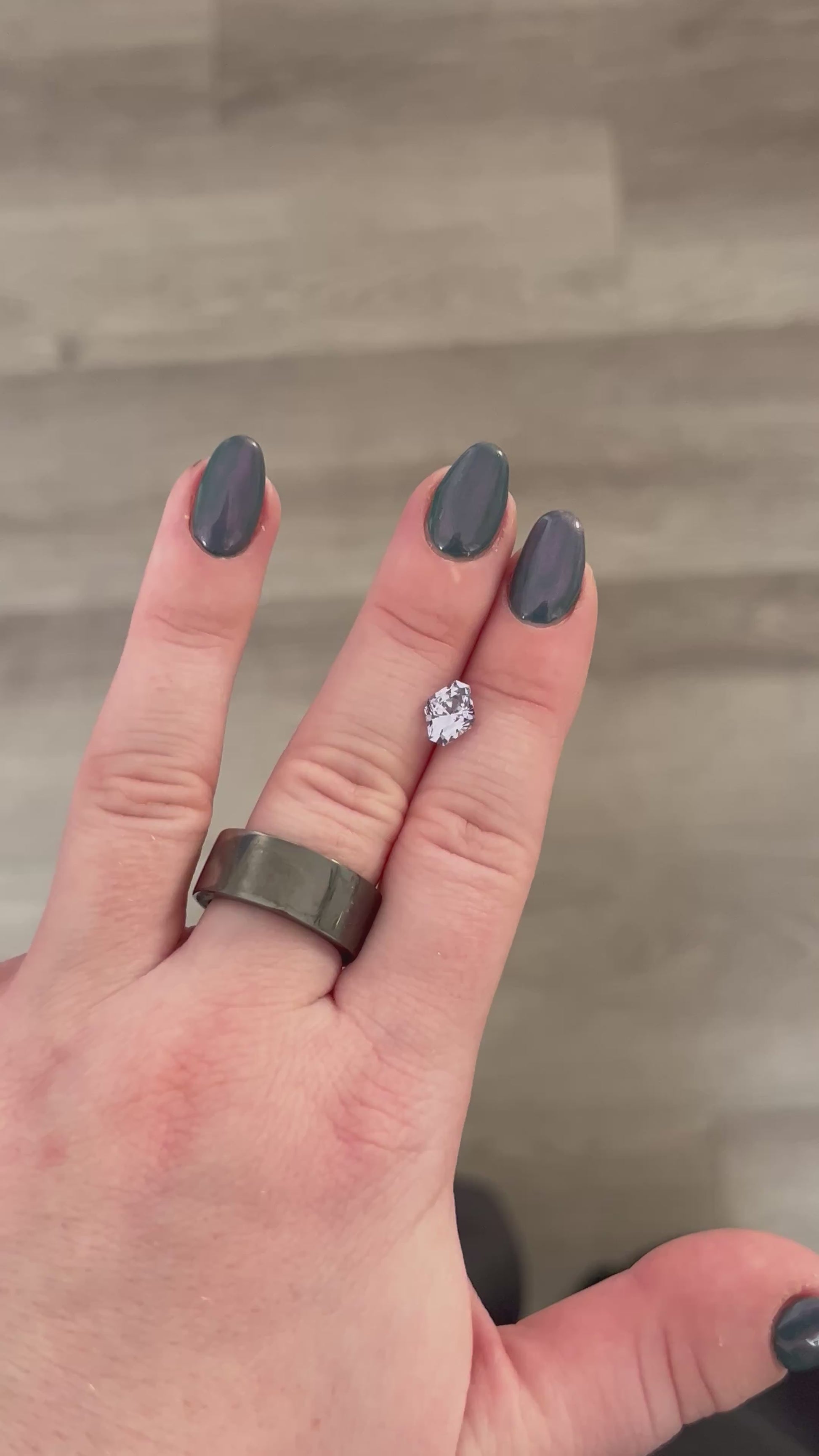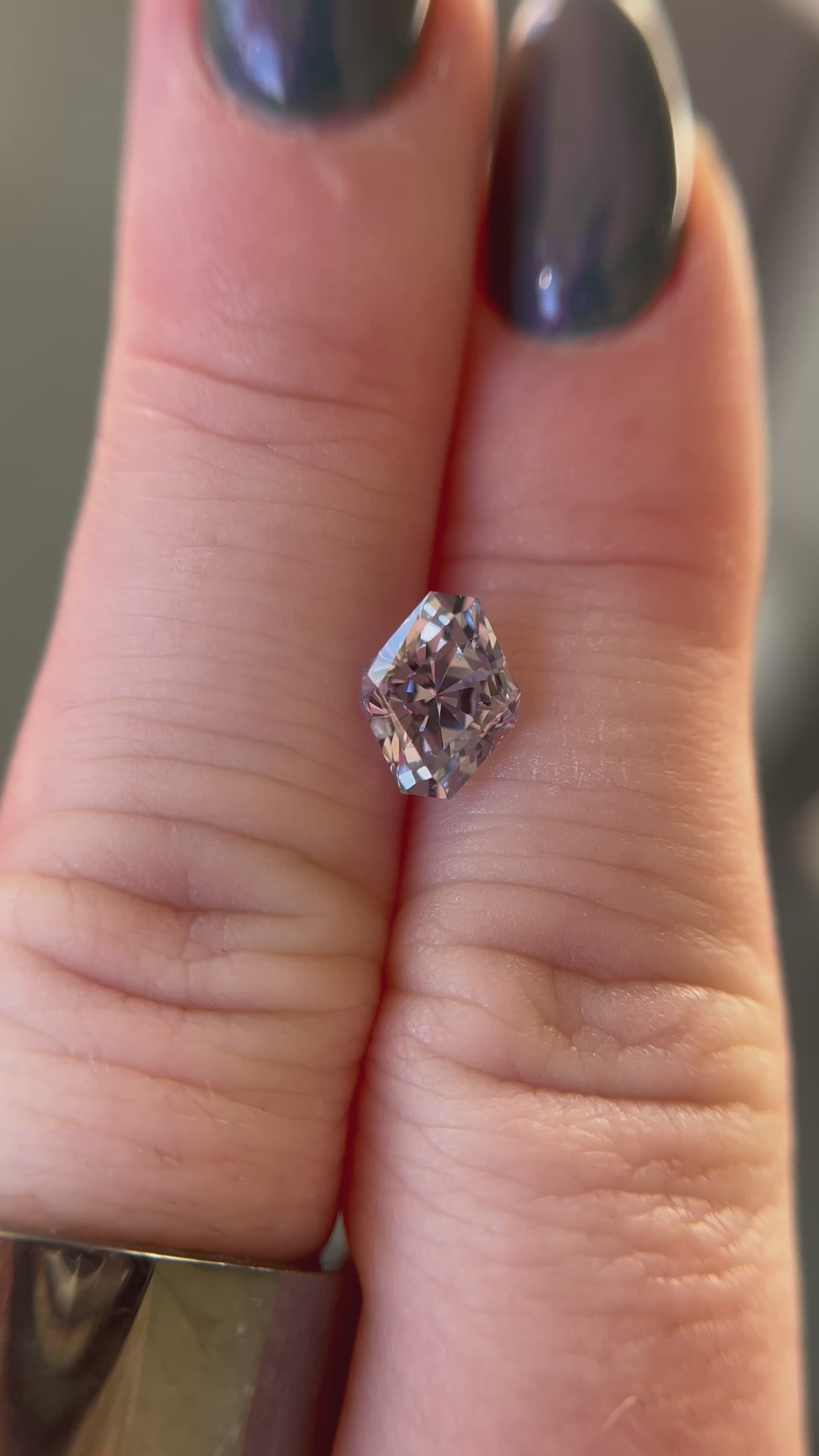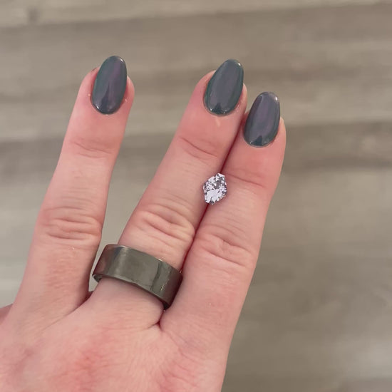 no heat, Madagascar. Very faint greyish purpleish blueish color. Its brilliance is spectacular. Inclusion in the crown but not extremely visible with all the brilliance