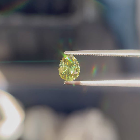 No Heat, Australian. Very slightly parti, but faces up greenish yellow! Surface reaching inclusion in pavilion