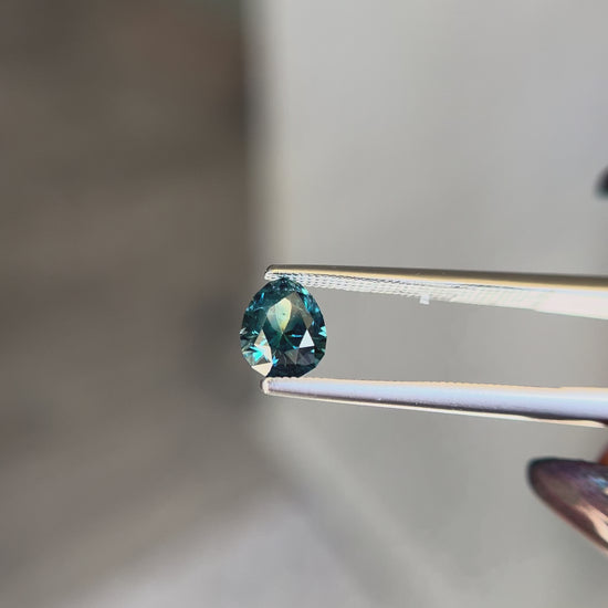 Heated, Rock Creek, Montana. Small surface reaching inclusion on crown and inclusion inside. Peacock teal